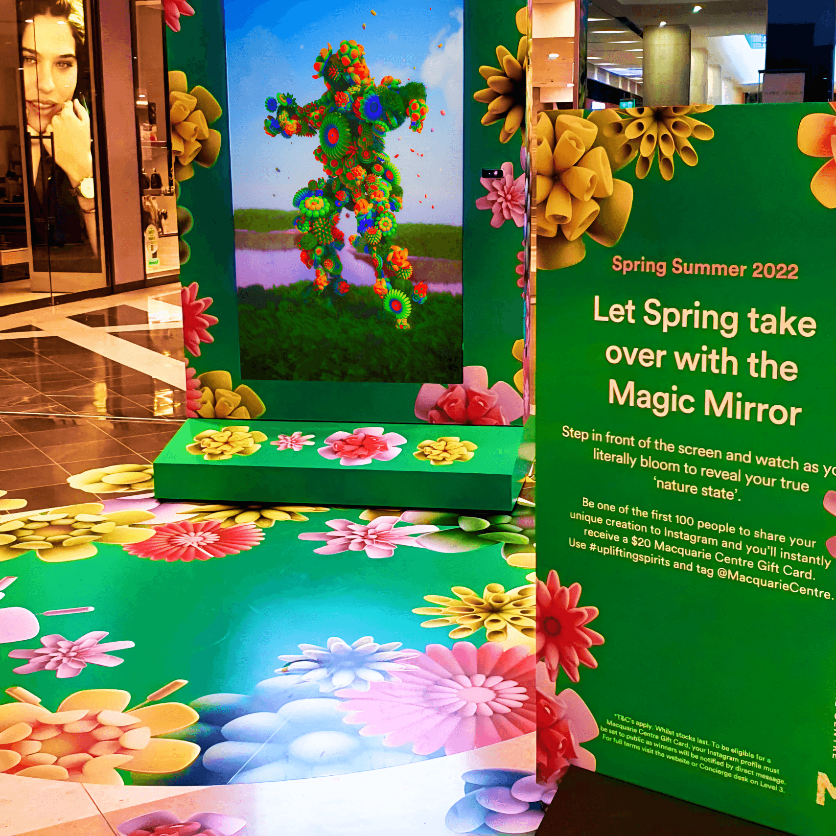 An interactive mirror that turns human gestures into floral bursts of colour.